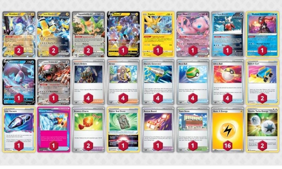 But anyway, Miraidon should beat a most decks just purely because it is very consistent at getting a turn one 220+prime catcher or an amp you very much, then from there take a second prize on one of the many 1 prize bench sitters in this format, then take the last 2 with a blood moon ursaluna+boss. There is only one caveat to this turbo 2-2-2 strategy, and that is you HAVE to hit your electricity generators, but you play fifteen energies, so you should hit them pretty consistently right?!? (Once again, I have truly showcased my skills as a master of foreshadowing). And after running all of these ideas past Lou, who agreed with me (I chose to politely decline his previous idea of me playing Charizard. I felt the idea was good enough to at least try.