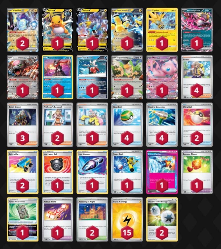 But then, the Sunday before the event, I woke up with a ‘brainwave’ (I have one of these before almost every event, they usually end with me going 0-3 S) this idea I woke up with was that i should play the deck that I have trash talked and called bad since it released: Mid Rider (Miraidon). The thought behind this idea was, in this format the only decks which Miraidon has bad matchups into were Charizard and block Snorlax, both decks which I assumed would not have a very high play rate as I thought Charizard was not well placed/built correctly for this event, and in the case of Blocklax, surely not many people will come all the way to Hawaii just to play block Snorlax right? (Ah, the art of foreshadowing, truly beautiful.